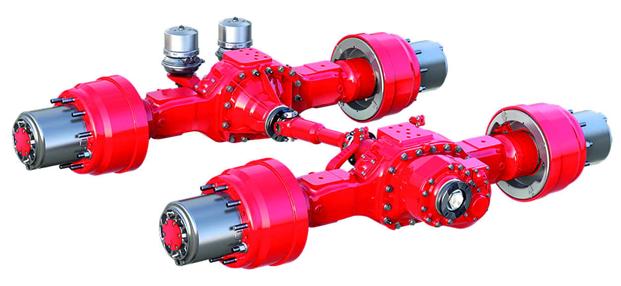 Modelo de maior capacidade da empresa, o eixo tandem MT 38-610 foi desenvolvido para aplicações severas em mineração, oferecendo capacidade vertical de 38 t por conjunto de eixo e Peso Bruto Combinado (PBC) de até 150 t. Montado em Osasco (SP), o projeto contou com colaboração da engenharia global da empresa no segmento off-highway.