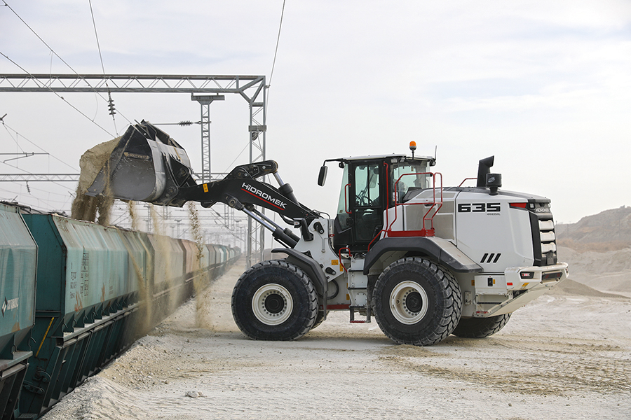 A empresa levou à ConExpo nove diferentes famílias de máquinas, incluindo a carregadeira heavy duty HMK 635 WL (foto), reforçada para operações em minas e pedreiras. Além de escavadeiras da série H4, a fabricante apresentou modelos como a miniretroescavadeira HMK 62 SS e as retroescavadeiras HMK 102 B Alpha e HMK 102 B Canopy.