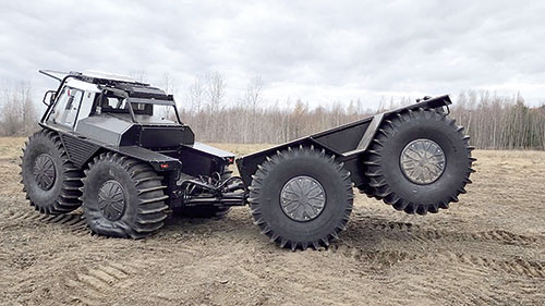 A fabricante lançou na ConExpo o novo Fat Truck 8x8, veículo anfíbio projetado para transporte de cargas pesadas ou tripulação em terrenos exigentes. Com velocidades de 40 km/h em terra e 5 km/h na água, o novo 8x8 está disponível nas versões Hauler e Wagon, com capacidade de carga útil de 2.262 kg ou tripulação de 16 trabalhadores.