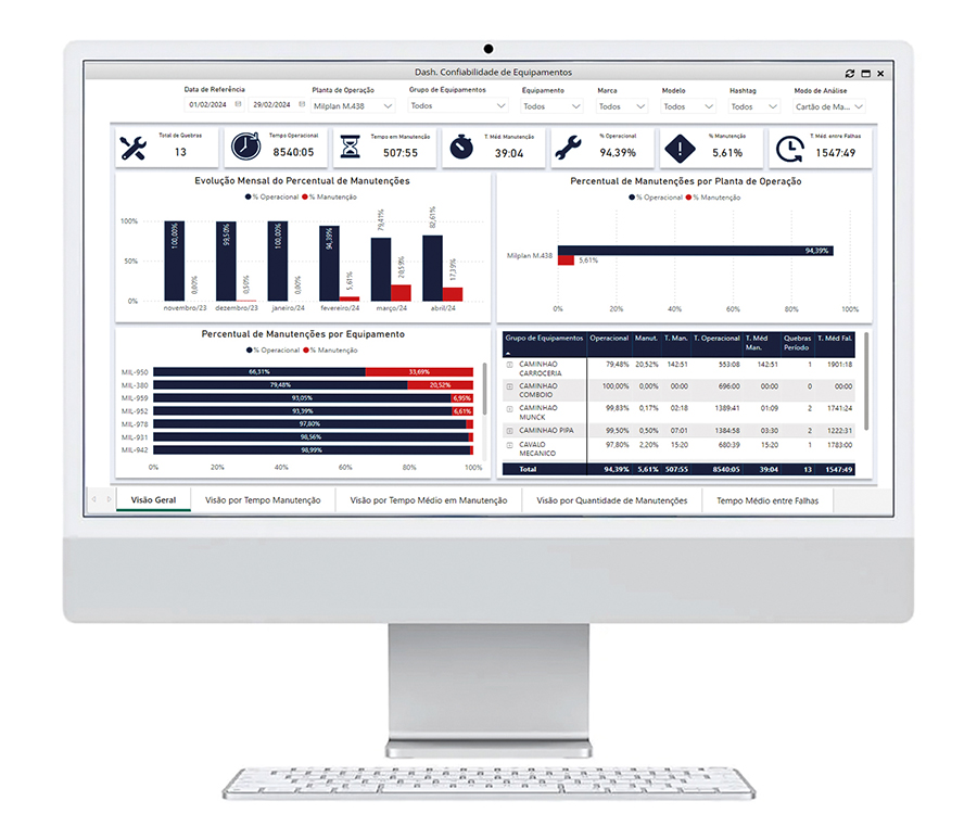 Há ainda módulos de custos, orçamento, licenciamento e seguros, além de uma funcionalidade denominada Renove, que ajuda a identificar o momento ideal de renovação dos equipamentos com base em critérios econômicos.