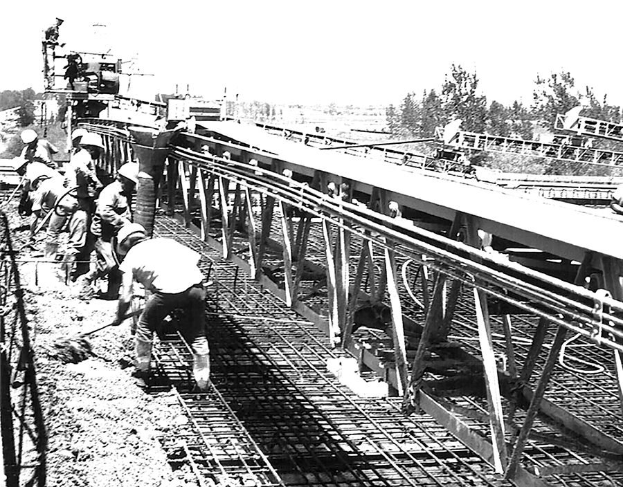 A partir dos anos 1930, o uso de correias de descarga lateral seintensificou no transporte de concreto, como mostra essa obra em uma ponte