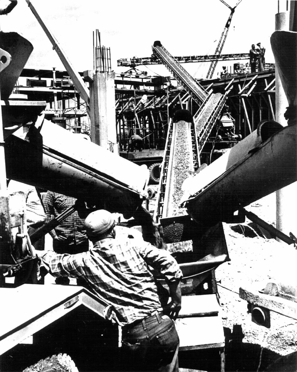 Entre 1941 e 1950, as correias transportadoras participaram do lançamento de concreto em sete obras significativas de barragem nos Estados Unidos, que ainda buscavam soluções para o transporte do concreto entre o caminhão-betoneira e o local de lançamento.