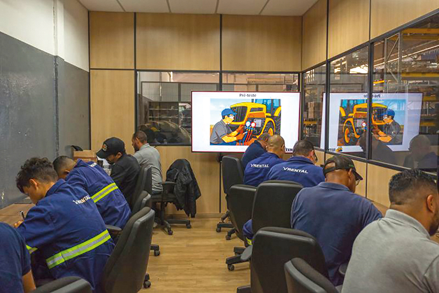 Nesse campo, nossa ação mais importante é a manutenção das máquinas de forma preventiva nos nossos clientes, com acompanhamento contínuo da frota por telemetria. Além disso, a presença do nosso time de operações em campo é um aspecto fundamental para a alta disponibilidade que alcançamos em nossos serviços. Fazemos a manutenção em campo com mecânicos próprios, incluindo o uso de telemetria e, ainda, oficinas próprias com pessoal especializado.