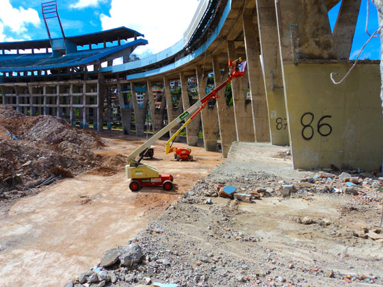 Apesar da maior popularização dos modelos menores, Esteves diz que a frota da Solaris é composta por booms de até 43 m de altura, utilizadas em obras de grande envergadura, como complexos portuários e estádios de futebol. “Quando falamos de plataformas acima de 30 m de altura de trabalho, estamos tratando essencialmente de modelos com lança telescópica.” No caso dos equipamentos de menor alcance, ele explica que existem tanto plataformas com lança telescópica como articuladas, mais utilizadas nos canteiros brasileiros.