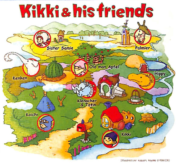 Há também duas garotas: Samie (uma espécie de princesinha) e Koichi (mais aventureira e intelectual, sempre com um óculos de aviador na cabeça). Não poderiam faltar também alguns animais bem humorados: a simpática girafa Palmier, Kenken, o elefante (muito útil para distrair os pequenos internautas no carregamento entre uma seção e outra do site); e dois rinocerontes Klennacker e Tatin. O sábio e bom conselheiro da turminha é o velho Apfel.