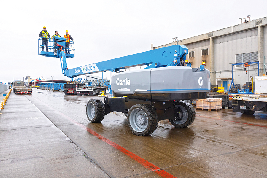 Destaque da Genie, o modelo elétrico S-85 XC FE utiliza baterias de íons de lítio de 48 V. Imagem: GENIE