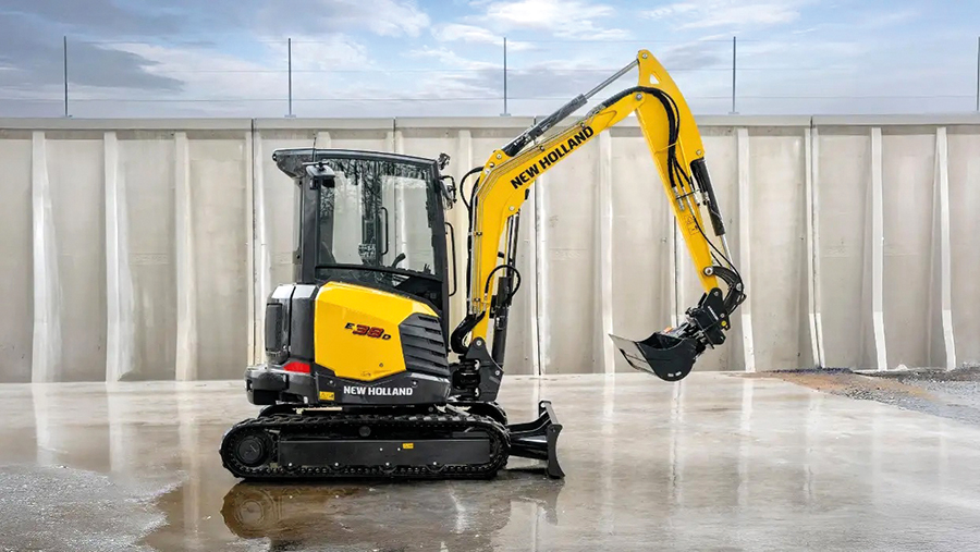 Miniescavadeiras da série ganharam destaque no estande da New Holland Construction. Imagem: NEW HOLLAND CONSTRUCTION