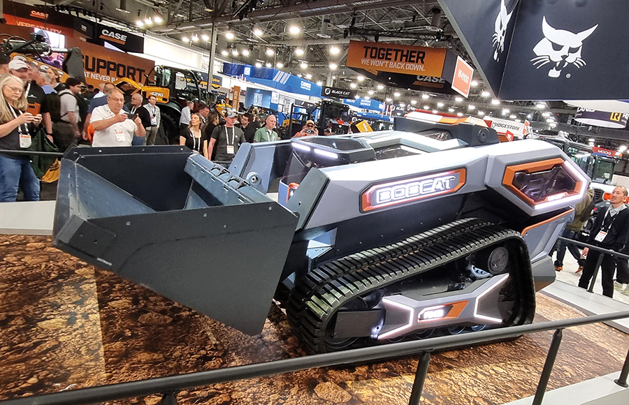 A Bobcat exibiu na feira a nova versão elétrica autônoma do modelo conceitual RogueX3. Imagem: MARCELO JANUÁRIO