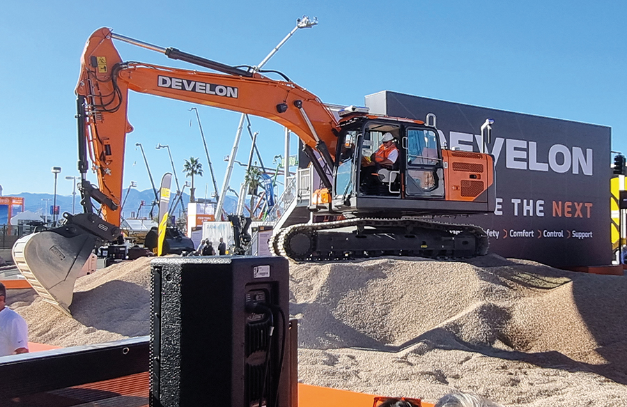 De volta ao evento, a Develon destacou novas escavadeiras pesadas como o modelo DX230LC-9. Imagem: MARCELO JANUÁRIO