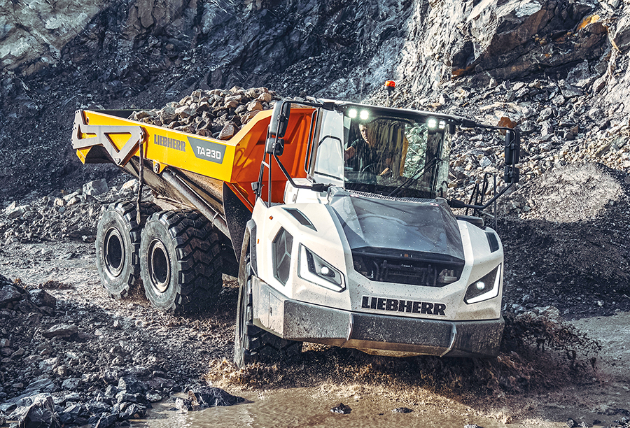 Com capacidade de carga de 55.000 kg e novo trem de força, o modelo ADT 6x6 tem peso bruto de 98.750 kg e motor de 470 kW, podendo atingir 57 km/h.