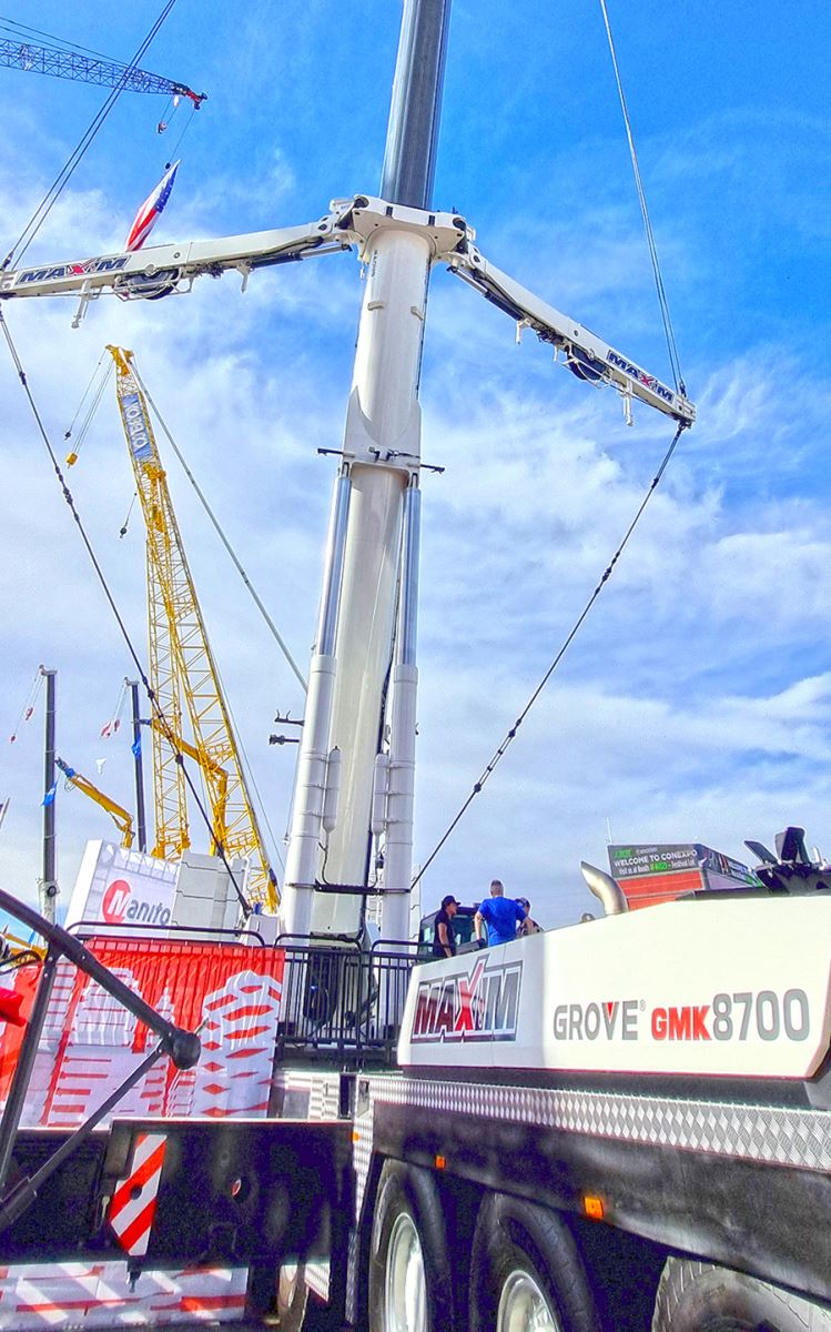 Além de serviços, a Manitowoc destacou guindastes como o Grove GMK 8700. Imagem: MARCELO JANUÁRIO