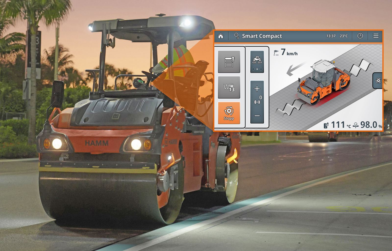 Na Wirtgen, a Hamm apostou em soluções de automação como o sistema Smart Compact Pro. Imagem: HAMM