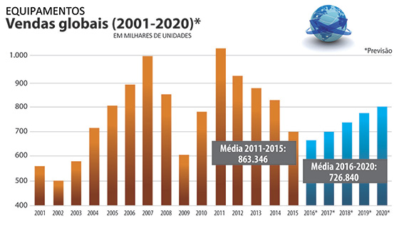 Em números brutos, isso significa que, pelas previsões da Off-Highway Research, o mercado em 2020 movimentará o mesmo volume anual registrado em 2005, em um nítido comportamento cíclico de queda e recuperação com intervalos de uma década, nem sempre com o mesmo ritmo de recuperação.