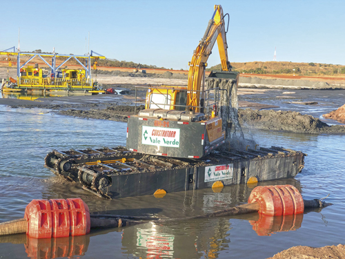 Segundo o diretor Hugo Pereira Soares, as escavadeiras anfíbias proporcionam melhor aproveitamento da área para disposição dos rejeitos, pois norteiam a polpa (mistura de rejeito com água) de forma que a parte sólida – sedimentada ao longo do caminho construído pelas escavadeiras – seja depositada na barragem, excedendo à jusante (lado para onde se dirige a água corrente de um curso de água) somente a água com baixo índice de impurezas. “