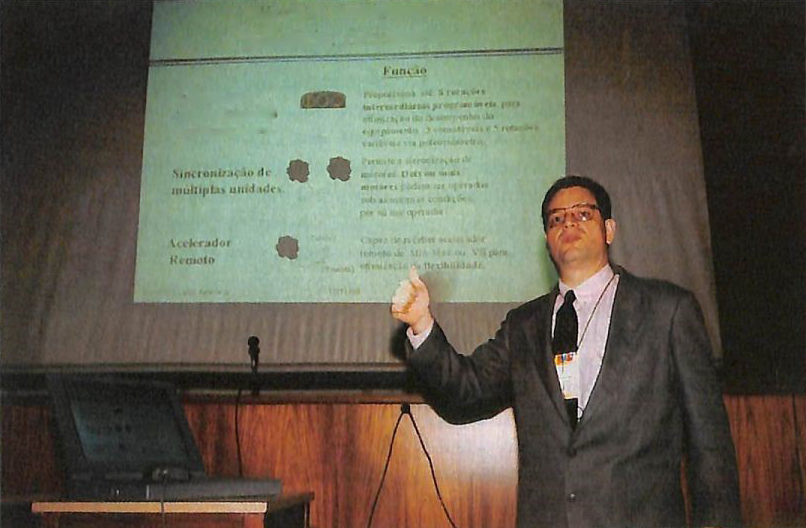 Mas, além disso, tem o controle do nível de emissões e uma nova possibilidade que interessa principalmente a nossos amigos ligados à operação e manutenção. A curva de performance do motor passou a ser definida por software, não tem que trocar peça nenhuma do motor. Se eu tenho um motor aplicado numa máquina que tenha a mesma característica mecânica aplicada para outra máquina, só que um é de 200 HP e o outro de 300 H.P., se o mesmo conjunto mecânico tem capacidade de atender os dois, eu não tenho que trocar peça nenhuma para passar de 200 para 300. Eu simplesmente ligo o computador, troco o programa daquele motor e ele passa a ser um motor de 300 H.P. Então, dentro de faixas até relativamente largas de potências e de aplicações, um só produto pode atender a várias aplicações. Isso para a manutenção, para a disponibilidade de equipamentos, é uma coisa muito boa. Em termos de peças também é importante, reduz o que se tem de ter dc inventário para poder atender a uma alta disponibilidade.