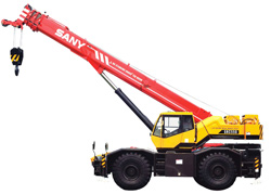 Um guindaste Rough Terrain (RT) de 55 t de capacidade de carga, indicado para aplicação em terrenos difíceis, figura como uma das principais atrações reservadas chinesa Sany durante a M&T Expo 2012.