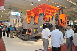 Um britador de mandíbulas também figurou como um dos principais destaques da Sandvik em seu estande na M&T Expo 2012. Segundo a empresa, o QJ341 foi totalmente remodelado, com base nas necessidades dos usuários, e integra sua linha de britadores primários para aplicação em conjuntos móveis sobre esteiras. “Percebemos uma tendência para esse tipo de arquitetura, que combina flexibilidade com a automação do processo”, diz Glauco Teixeira, vice-presidente de construção da Sandvik Brasil.
