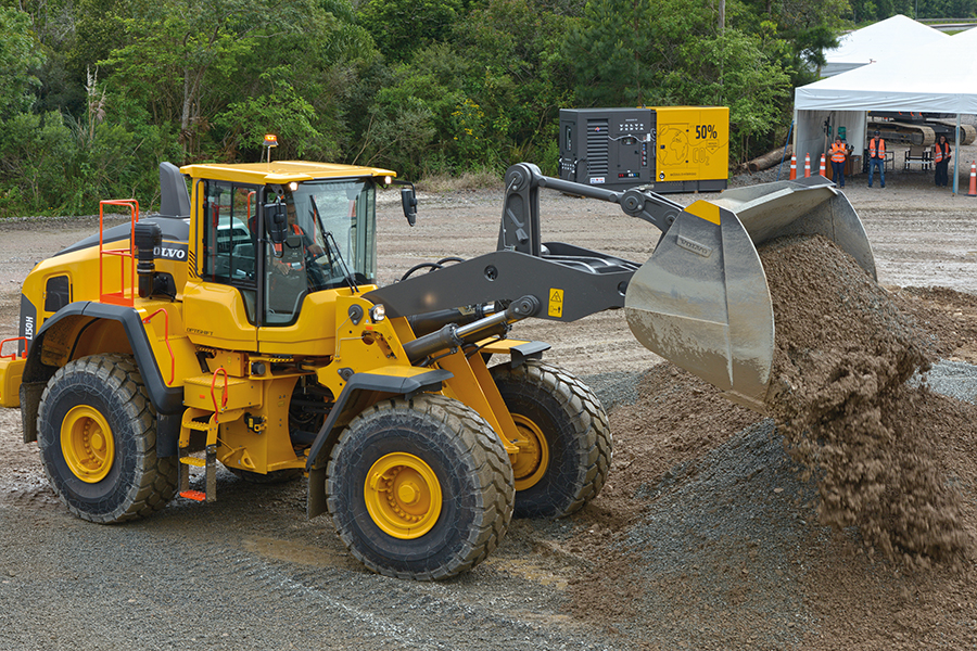 Quando operando com diesel B15 padrão, o módulo híbrido promete reduzir as emissões de CO2 das máquinas em até 50% nas operações. Essa redução é atingida na operação de uma carregadeira Electric L120 em relação a um equipamento Volvo de porte similar, considerando valores médios de consumo de energia e diesel.