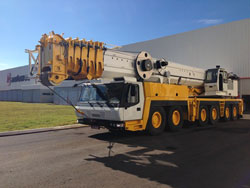 O GMK6250L recém-recondicionado foi diretamente trabalhar na mesma fábrica que realizou seu recondicionamento: a fábrica da Manitowoc em Passo Fundo.
