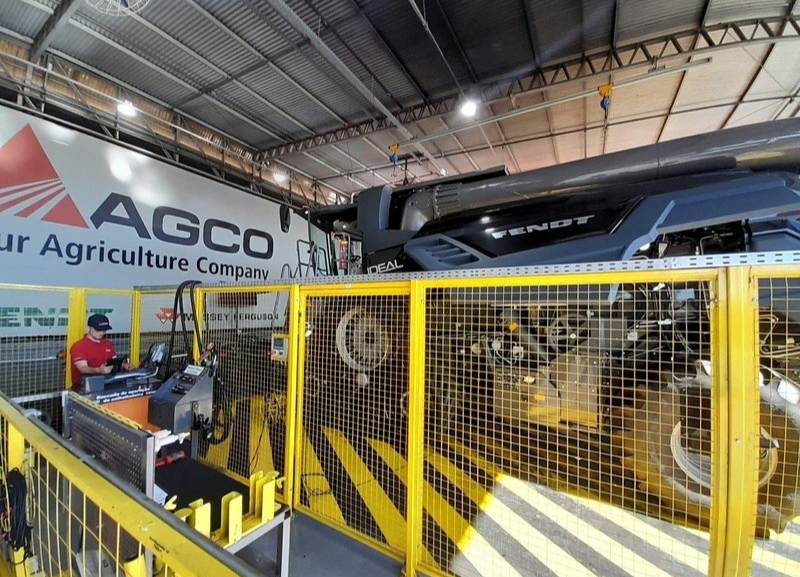 Na fábrica da AGCO em Santa Rosa (RS), a célula de testes de colheitadeiras opera com scanners e câmeras, permitindo que os testes sejam realizados 100% de forma remota.
