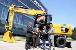 ...O distribuidor da Caterpillar na Alemanha, Zeppelin, vendeu a 25.000ª escavadeira sobre rodas, para a empresa BMTI, uma subsidiária da Strabag, com sede na Áustria. A entrega da máquina foi feita aos executivos seniores de BMTI, em Garching, próximo à Munique, no final de agosto.