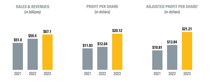 Segundo o relatório referente a 2023, divulgado ontem (16), a Caterpillar alcançou resultados financeiros históricos nos segmentos em que atua, obtendo recordes em vendas, receitas, lucro operacional ajustado, lucro ajustado por ação e fluxo de caixa livre.