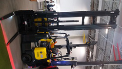 “Pode receber torres tríplex ou quadriplex montadas sobre o eixo dianteiro e tem sistema hidráulico Bosch Rexroth acionado por motor de corrente alternada”, diz o executivo.