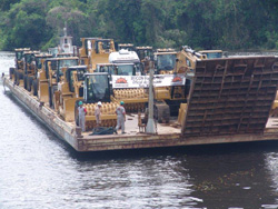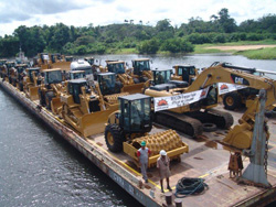 Até o final de julho, o Consórcio Construtor Belo Monte (CCBM), contratado pela empresa Norte Energia para a execução da maior obra de hidrelétrica do Brasil desde a implantação de Itaipu, deverá mobilizar quase 200 equipamentos adquiridos para os serviços de terraplenagem e movimentação de terra e rocha. O primeiro comboio, totalizando 40 equipamentos de grande porte, entre escavadeiras hidráulicas, pás carregadeiras, tratores de esteiras, rolos compactadores e outros, chegou à cidade de Altamira (PA) no início de julho, por meio de barcaças que partiram de Belém (PA).