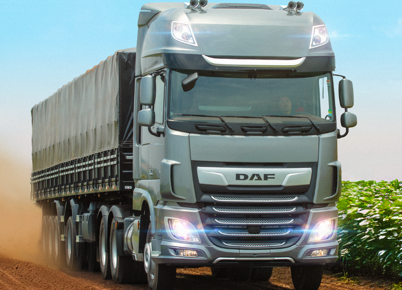 A fabricante mostrará seus principais modelos voltados para o agronegócio: o DAF XF 6x4, disponível nas configurações de 480 e 530cv, e o DAF CF 8x2, com 310cv.