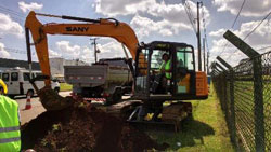 A escavadeira da Sany, modelo SY75C, foi a escolhida para a realização das obras para a expansão da rede de distribuição da Companhia Paranaense de Gás (Compagas).