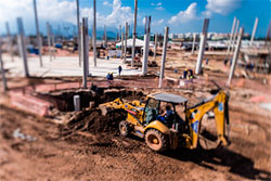 Após as obras de terraplanagem, a construção das fundações e a instalação da infraestrutura subterrânea - como redes de água, gás, esgoto, elétrica e drenagem -, as primeiras estruturas externas começam a aparecer.
