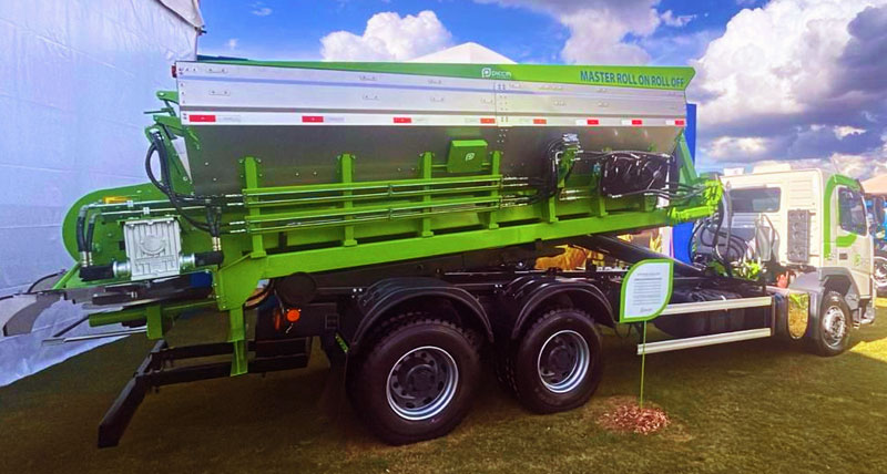 Outro destaque é o rodotrem basculante, voltado ao transporte de insumos e materiais a granel, com foco em robustez e agilidade nas operações de carga e descarga.