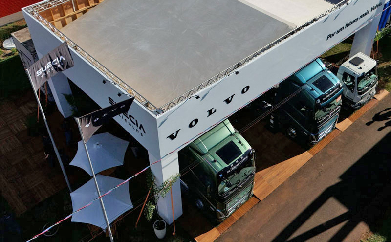 A Volvo exibe três veículos, incluindo um Volvo FH 540 6x4, caminhão pesado mais vendido do Brasil há sete anos consecutivos e líder no transporte de grãos.