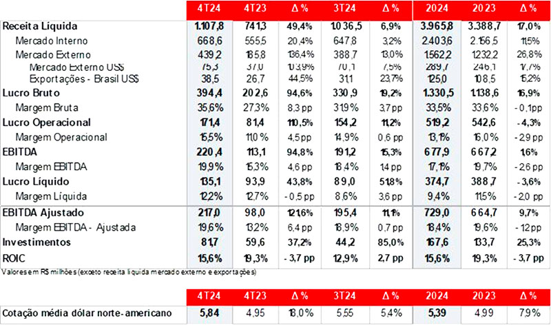 Segundo a empresa, os números apurados em 2024 ainda não contabilizam as sinergias da aquisição da Dacomsa, no México.