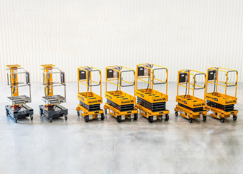 Completam o portfólio as tesouras das linhas Swift Up, disponíveis em versão push-around (com altura de trabalho de 3,8 m ou 4,5 m), e Swift Up SP, com versão autopropulsada (tração elétrica e elevação) e que oferecem altura máxima de trabalho de 4,5 m, 5 m ou 5,9 m, de acordo com o modelo.