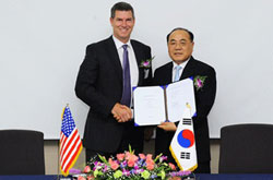A cerimônia de assinatura, realizada na sede da Hyundai Heavy, em Ulsan, na Coréia, foi assistida por Rich Freeland, presidente da Cummins, Choe Sr. Byeong-ku, COO da Hyundai Construction Equipment Division, e Kim Jeong-hwan Sr., COO da Hyundai Motor & Máquinas Divisão. "Nosso objetivo é tornar-se um fabricante de escavadeiras Top 3 em 2016, com vendas anuais de US $ 9,1 bilhões", afirma o CCO da Hyundai, Choe Sr. Byeong-ku.