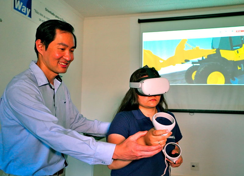 Há cerca de um ano, a Komatsu começou a utilizar no Brasil um novo módulo de treinamento em segurança que utiliza óculos de realidade virtual (RV).