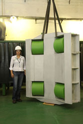 Os roletes especiais, com peso médio de 1,8 toneladas ca