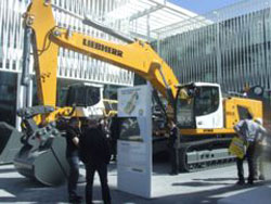 A fabricante Liebherr apresentou sua primeira escavadeira híbrida na Bauma 2013, a R 9XX, desenvolvida com motores a diesel e tecnologia de motorização elétrica.