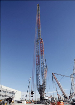 A Liebherr revela seu mais novo opcional para guindastes extremos! Batizado de P-Boom (Power Boom), este por enquanto será um opcional para o modelo LR 11350, para 1350t sobre esteira.