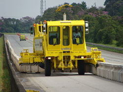 ...A Lindsay divulga soluções presentes em seu portfólio como QMB (Quickchange Moveable Barrier), terminal absorvedor de impacto X-Lite, atenuador de impacto universal ABSORB 350 e das barreiras de aço transportáveis.