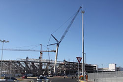A etapa de montagem da cobertura metálica do CFONE e também no auxilio as operações da construção, como movimentações de cargas diversas deu início na semana passada.