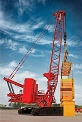 ...O guindaste de esteira Manitowoc MLC650 passou no teste de carga necessário para a validação de sua capacidade máxima de elevação. Segundo Dustin Soerens, gerente de marketing de guindastes treliçados na Manitowoc, o guindaste ergueu 650 ton de pesos de teste, oficializando a capacidade que foi anunciada.