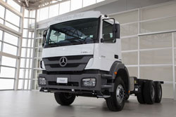 A Mercedes-Benz realiza a divulgação do caminhão Axor 3131 6x4, com PBT de 31,5 toneladas, da linha fora de estrada, em versões basculantes, betoneira e plataforma.