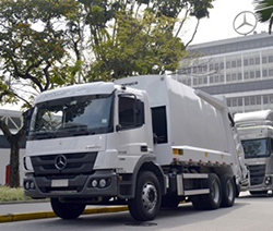 Um trabalho conjunto realizado entre a Allison Transmission e a Mercedes-Benz resultou no desenvolvimento do primeiro caminhão brasileiro de coleta de resíduos totalmente automático da Mercedes-Benz.
