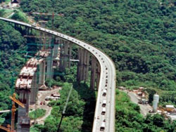 ...No mês de julho foi iniciado o prolongamento da Rodovia dos Imigrantes (SP-160), em São Vicente, que incluirá a construção de dois viadutos eliminando o cruzamento feito por semáforos na rodovia. Outro viaduto será erguido no Jardim Casqueiro, em Cubatão, sobre a Via Anchieta (SP150).