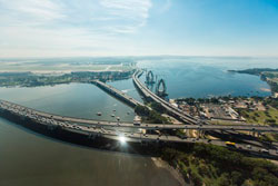 “Construída sobre o rio Camori, a ponte estaiada é uma estrutura mais complexa do que aparenta. Considerada uma obra de arte, ela não possui pilares sobre as águas e é suspensa pelos famosos estais, tudo isso para preservar o meio ambiente e garantir a navegabilidade local”, diz.