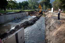 O Programa denominado Recuperação Ambiental da Bacia de Jacarepaguá já finalizou a canalização de quatro rios, como o Córrego da Panela e os rios Itanhangá, São Francisco e Papagaio, este último alvo de uma intervenção que transformou uma área, que, por anos, foi apenas um valão a céu aberto.