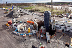 A 7,0 m, a máquina de hard rock chegou a excelentes taxas de avanço em xisto macio situados na região, com média de 21 m por dia.
