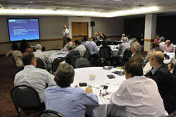 Os jornalistas presentes assistiram também a uma palestra proferida por Antonio Roberto Gaviolli, da Odebrecht, diretor de contrato da obra, falando sobre detalhes do projeto e sobre o andamento das construções, que, até o momento, apresenta 63% das obras concluídas.